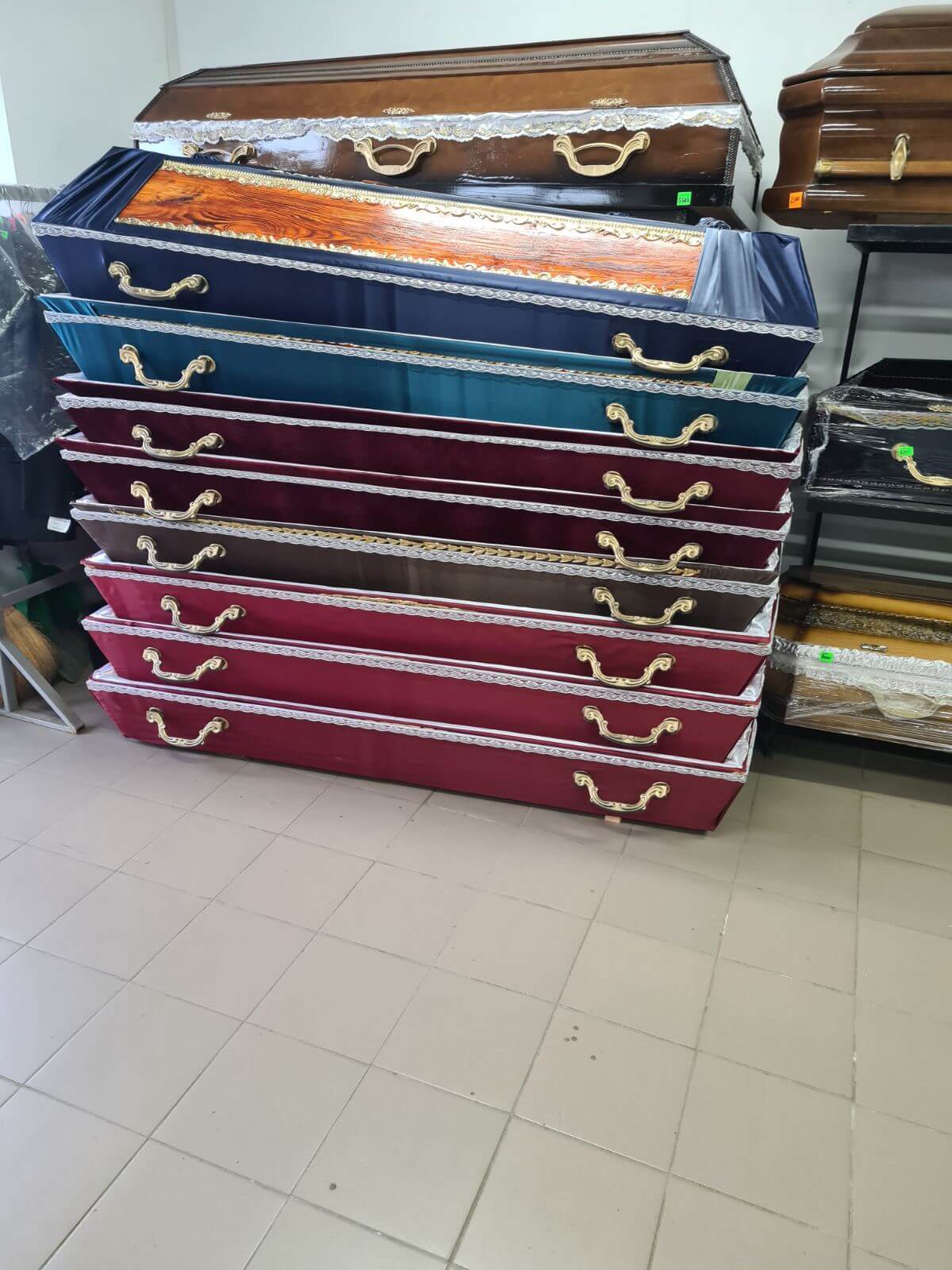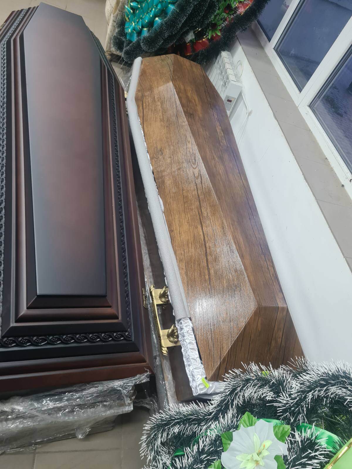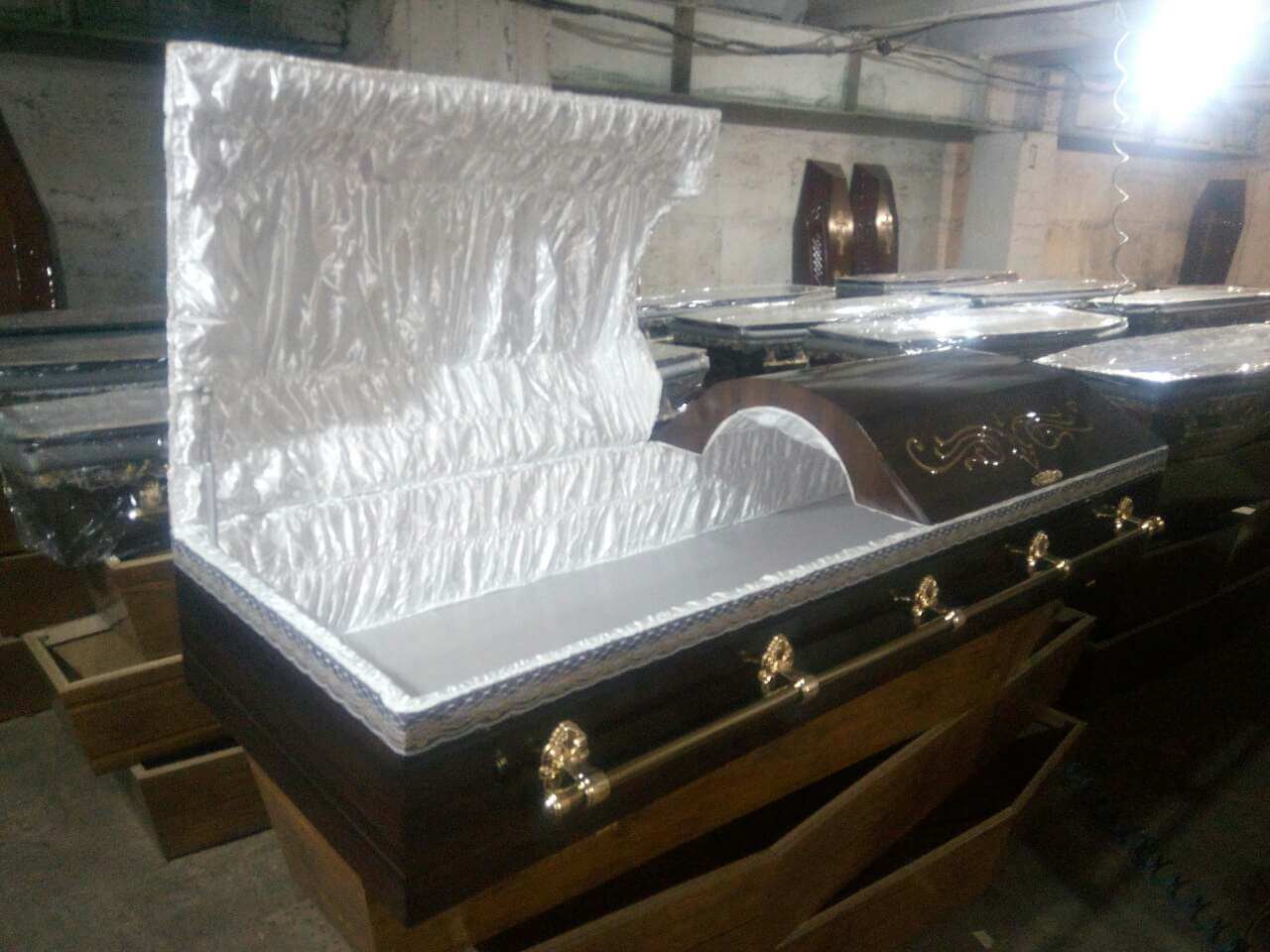 Найчастіше труни роблять з дерева. Для їх виробництва використовують дуб, бук, сосну, вишню і інші цінні породи деревини. Саме дерев’яні труни краще як для традиційного похорону, так і для кремації.